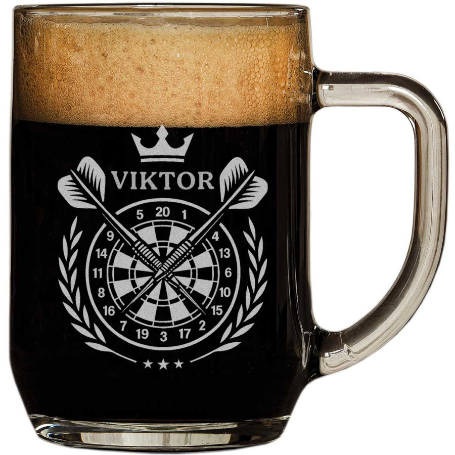 Ideální dárek pro šipkaře: Půllitr s vygravírovaným jménem. Na půllitr vám vygravírujeme jméno oslavence.